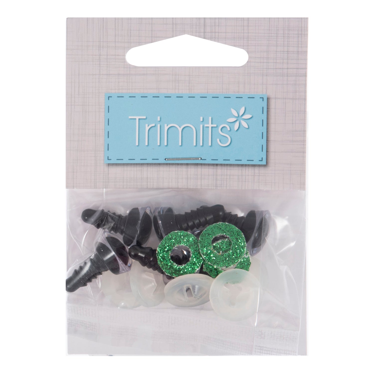 These plastic toy eyes are ideal for craft projects and toy making. Pack of 6. (Diam) 12mm. Colour - green glitter.