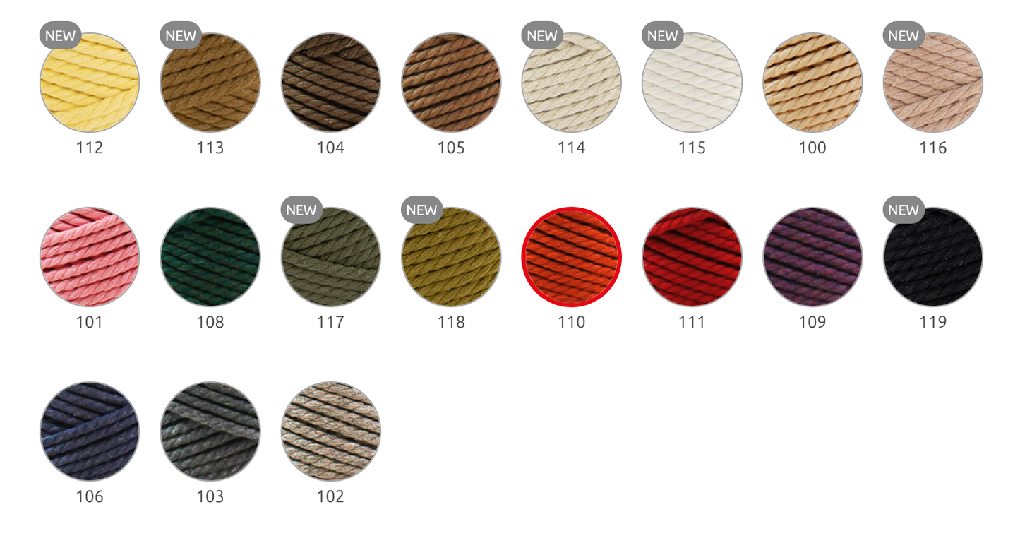 Bobbin made from recycled cord that is especially apt for making macrame projects and comes in fashionable trend colours. Create contemporary macrame fashion accessories or items to decorate your home. Follow our video to make a beautiful macrame hanging basket for a plant pot using only one bobbin of Macramé Cord. Thickness: 5 mm